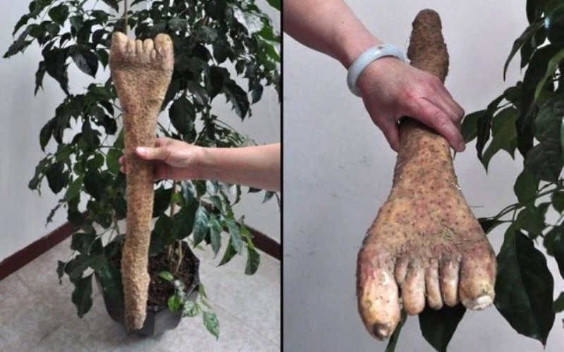 Củ khoai mỡ có hình dạng giống bàn chân người ở thành phố Tuyền Châu, Trung Quốc. Loại củ quả đột biến gen này từng khiến dân mạng sửng sốt khi được chứng kiến. (Ảnh: Dân Việt)