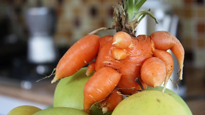 Đây là một củ cà rốt biến đổi gen với hàng chục củ cà rốt nhỏ bám quanh thân. Ảnh: Dân Việt.