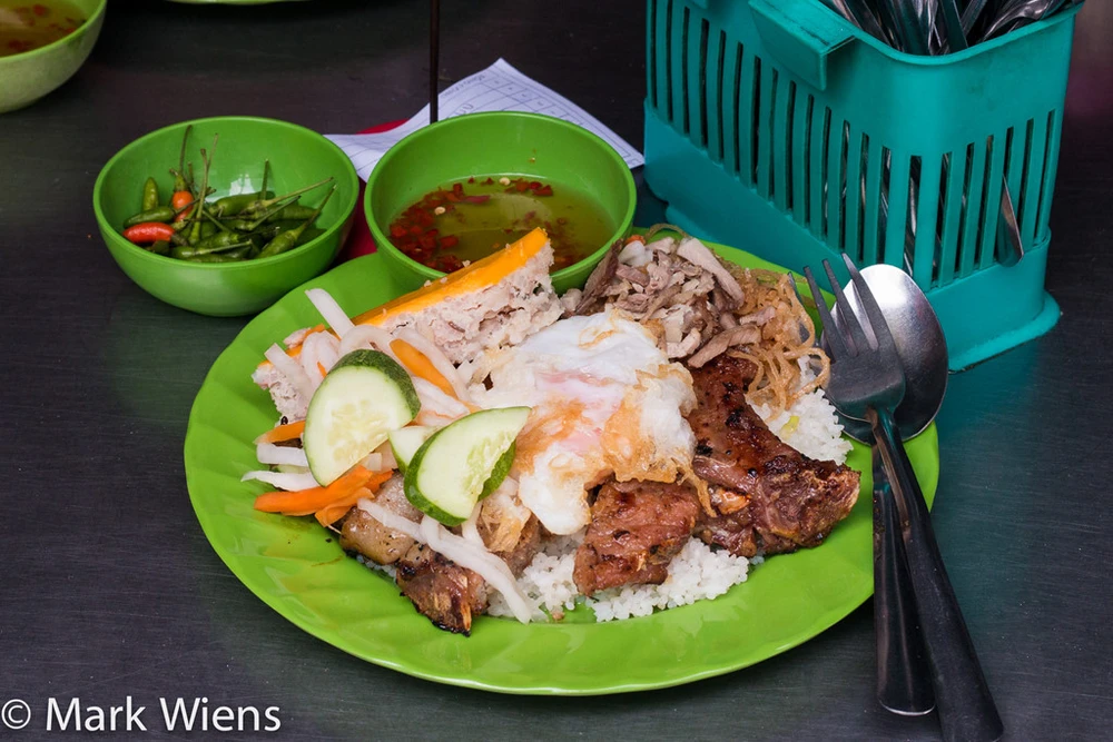 Cơm tấm: Đến Sài Gòn, du khách không thể bỏ lỡ món ăn vỉa hè hấp dẫn có tên cơm tấm. Cơm được nấu từ gạo tấm, dọn ăn cùng sườn nướng, trứng ốp la, chả, bì và rưới nước sốt. Ảnh: Migrationology