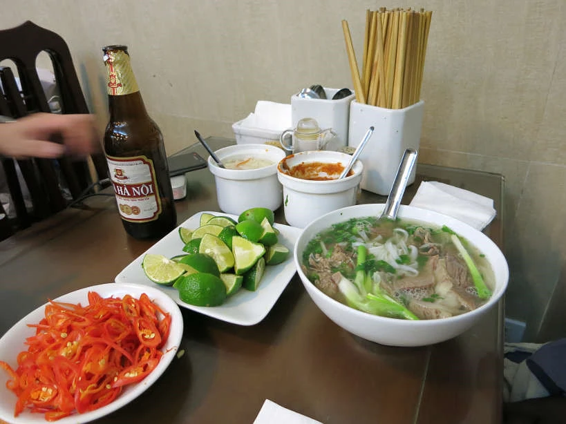 Ngoài vị ngon thanh thoát, phở còn có giá hợp túi tiền. Trong đó, bánh phở được chan nước dùng ninh từ xương, thêm thịt thái mỏng, ăn kèm chút giấm ớt, rau thơm hay chanh tùy khẩu vị từng người. Ảnh: Authentic Food Quest