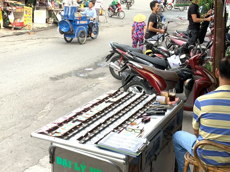 "Kinh nghiệm của tôi cho thấy, kinh tế càng khó khăn, người mua vé số càng nhiều, vì họ kỳ vọng bỏ 10.000 đồng nhưng sẽ có tiền tỉ trong tay nếu may mắn đến" - bà Hoà lý giải vé số vẫn bán chạy trong thời COVID-19. Một chủ đại lý vé số hỗ trợ người bán vé số dạo