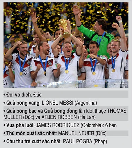 Ngoài những danh hiệu như đội vô địch, vua phá lưới, người xem đón nhận những danh hiệu bầu chọn của FIFA trong đó có danh hiệu gây tranh cãi nhiều nhất là Quả bóng vàng World Cup 2014 dành cho Messi. Chính Maradona sau khi nghe ban tổ chức công bố danh hiệu này đã phải thốt lên: “FIFA trao danh hiệu Quả bóng vàng World Cup 2014 cho Messi chỉ để quảng cáo!”.