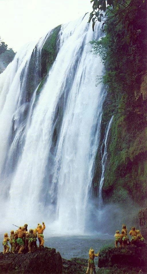 Hoa Quả Sơn, nơi sinh sống của bầy khỉ tinh khôn, được quay ở thác Hoàng Quả Thụ, tỉnh Quý Châu, Trung Quốc. Ảnh: Phim Tây Du Ký.