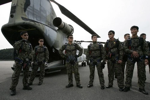 8. Hàn Quốc. Chỉ số sức mạnh: 0,6547. Ngân sách quốc phòng: 28.280 tỉ USD Binh lực: 653.000 lính. Tổng nhân lực trong lực lượng quốc phòng: 25.100.000 người. Tổng số máy bay: 871 chiếc. Tổng số tàu hải quân: 190 chiếc