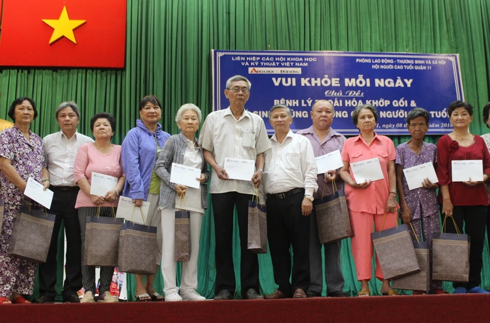 Ngày 8-10, báo Khoa học và Đời sống phối hợp với Phòng LĐ-TB&XH, Hội Người cao tuổi quận 11 (TP.HCM) tổ chức chương trình Vui khỏe mỗi ngày với chủ đề “Bệnh lý thoái hóa khớp gối - ký sinh trùng (KST) thường gặp ở người cao tuổi”. Chương trình có sự tham gia của 450 hội viên Hội Người cao tuổi của quận.