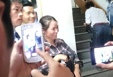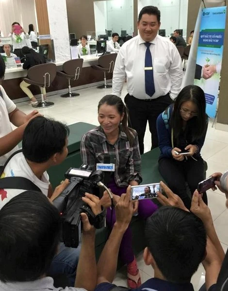 Chị Hồng tươi cười đến ngân hàng nhận 5 triệu Yen, chị gửi lời cảm ơn đến những người đã giúp đỡ mình trong suốt thời gian qua
