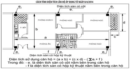 Theo đó, Diện tích sử dụng căn hộ được tính theo kích thước thông thủy (hình 1) và được ghi vào Giấy chứng nhận cấp cho người mua, bao gồm cả phần diện tích tường ngăn các phòng bên trong căn hộ và diện tích ban công, lô gia (nếu có) gắn liền với căn hộ đó, không tính tường bao ngôi nhà, tường phân chia các căn hộ, diện tích sàn có cột, hộp kỹ thuật nằm bên trong căn hộ.