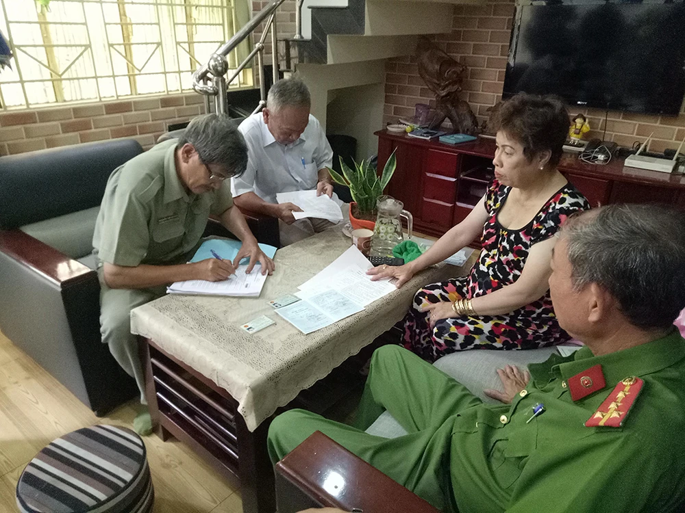 Sáng 18-4, Công an phường 19, quận Bình Thạnh, TP.HCM đã lập ba tổ công tác đến từng nhà dân để hướng dẫn người dân thí điểm việc kê khai vào phiếu thu thập thông tin dân cư.