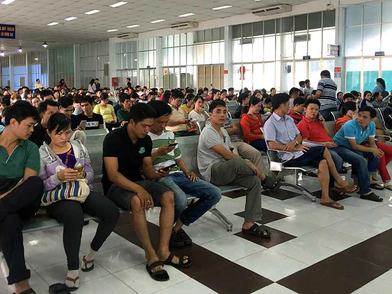 Theo ghi nhận của Pháp Luật TP.HCM, nhiều hành khách đã túc trực sớm tại ga Sài Gòn chờ mua vé theo số thứ tự được cấp qua tin nhắn trước đó. Một số người cũng đến sớm để thanh toán tiền sau khi đặt chỗ thành công trên website dsvn.vn.