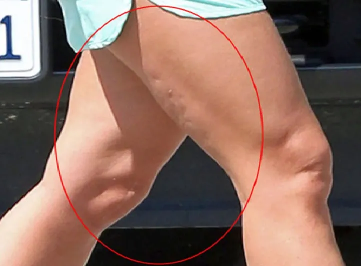 Tích mỡ dưới da xuất hiện phổ biến ở vùng đùi. Hình minh họa