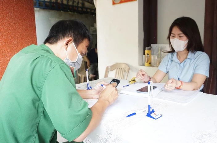 Người dân đang làm thủ tục nhận bảo hiểm xã hội. Ảnh: NGUYỄN HIỀN