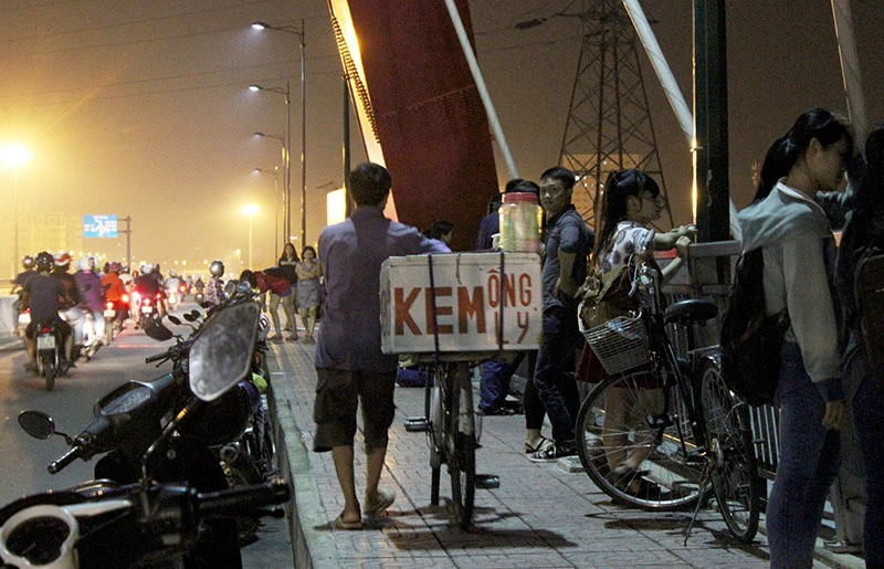 Cầu Bình Lợi rất đông người dân tụ tập dừng xe, ngắm cảnh hai bên vỉa hè, nhất là ngày cuối tuần mặc dù có biển cấm.