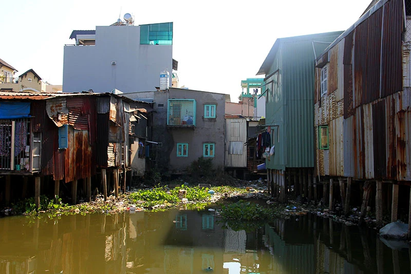 Khu vực nhà dân trên kênh luôn ngập rác.