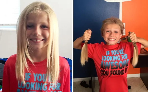 Cô bé tám tuổi này đã nuôi tóc hai năm nhằm lấy tóc quyên góp cho các bệnh nhi ung thư.