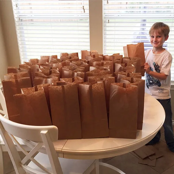 Cậu bé này đã nói với mẹ rằng một số bạn của con không có đồ ăn trưa và cậu đã nhờ mẹ giúp mình chuẩn bị đồ ăn cho các bạn.