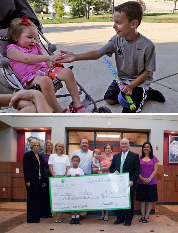 Cậu bé tám tuổi này đã dùng số tiền 1.000 đôla của mình sau khi chiến thắng cuộc vận động thu gom phế liệu để dành tặng cho cô bé hàng xóm bị ung thư bạch cầu.