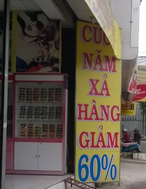 Dù chưa là thời điểm gần cuối năm, song nhiều người vẫn thấy hàng loạt tấm bảng đề “cuối năm xả hàng, giá rẻ” hoặc vào các ngày lễ để lấy lí do tung khuyến mãi “ nhân dịp khai trương năm học, nhân dịp 2/9, nhân dịp 20/10, nhân dịp 30/4...giảm giá 30…50%” (mặc dù ngày lễ còn cách khá lâu). Thực chất, những sản phẩm giảm giá chỉ chiếm một phần rất nhỏ trong số hàng hóa được bày bán. Có nơi treo biển khuyến mãi để câu khách song khi được hỏi, ngang nhiên trả lời : “Chương trình khuyến mãi đã kết thúc”. Bên cạnh đó, những phát ngôn “gây sốc”: “Ở đâu rẻ hơn trả lại tiền, giá rẻ chấp cả TP.HCM…”, cũng đặc biệt gây sự chú ý tới khách hàng.