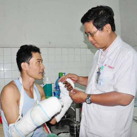 Ðầu tháng 12-2013, nhận một tấm ảnh của bác sĩ khoa Vi phẫu tạo hình – BV Chấn thương Chỉnh hình TP.HCM, tôi như không tin vào mắt mình. Một bàn tay anh công nhân bị dập nát do máy ép giày gây ra. Nhưng tấm ảnh thứ hai mà bác sĩ gửi sau đó là một bàn tay lành lặn, đang được băng bó kỹ càng. Tôi tức tốc chạy vào bệnh viện. Trước mắt tôi, anh công nhân gượng nhúc nhích các ngón tay. Anh bảo anh quá may mắn vì đáng lẽ nó đã không còn để mà nhúc nhích. Bác sĩ đã mất ba giờ mới cứu xong bàn tay này. “Bác sĩ cũng đã tư vấn cho gia đình biết là sẽ cắt bỏ bàn tay, chúng tôi đồng ý nhưng cuối cùng bác sĩ lại quyết nối bàn tay cho tôi” - anh công nhân cười hạnh phúc dù vừa trải qua tai nạn kinh hoàng.