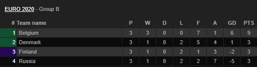 Phần Lan (bảng B) và Ukraine (bảng C) có 3 điểm kết thúc vòng bảng ở vị trí thứ 3 và chờ các kết quả các bảng đấu còn lại mới biết được số phận của mình.