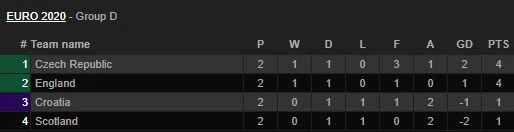 Hiện tại, còn ba bảng D, E, F chuẩn bị thi đấu lượt trận cuối cùng vòng bảng Euro 2020. Ở bảng D, Anh gặp Czech và Croatia đụng Scotland vào lúc 2h ngày 23-6.