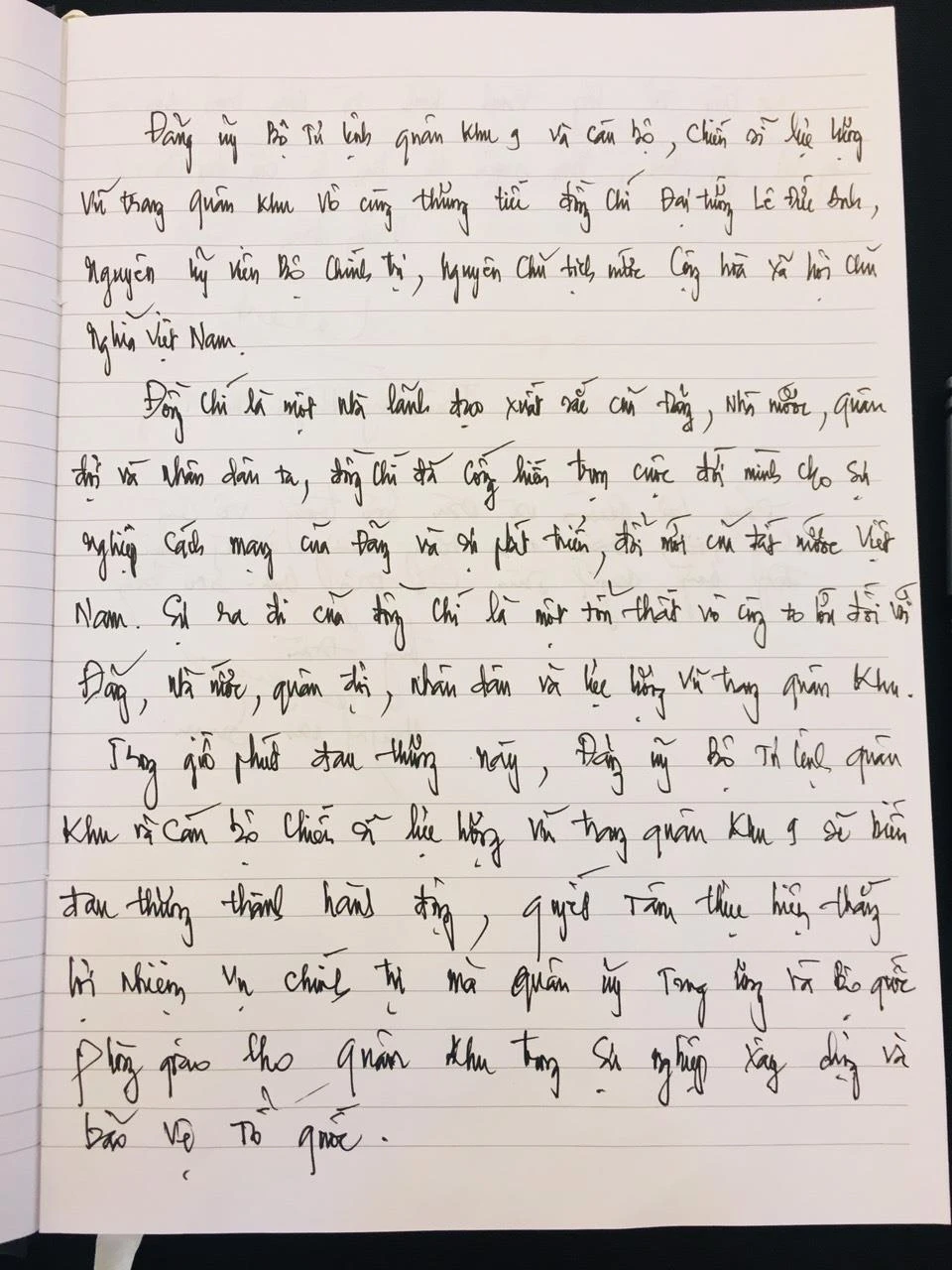Đảng bộ Tư lệnh Quận khu 9 gửi lời tiễn biệt.