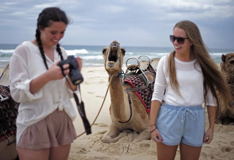 Khoảnh khắc đáng yêu của một chú lạc đà trên bãi biển Lighthouse, phía bắc Sydney, Australia.