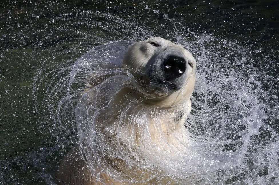 Chú gấu Bắc Cực 27 năm tuổi đang quẫy nước tại vườn thú Leningrad ở St. Petersburg, Nga.