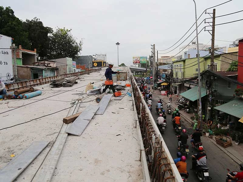 Ngay khi vấn đề mặt bằng được giải quyết, cầu vượt Nguyễn Kiệm – Nguyễn Thái Sơn sẽ được hoàn thiện. Ảnh: HOÀNG GIANG