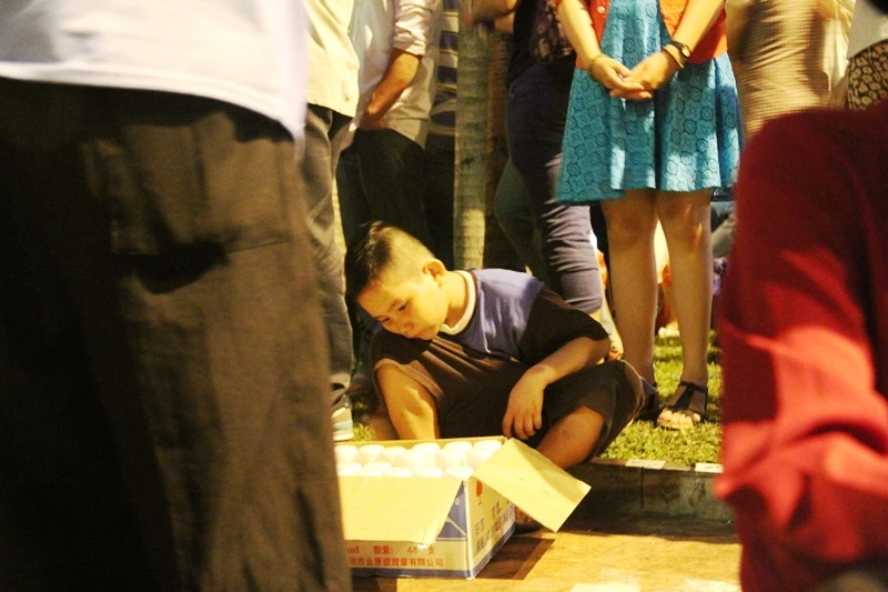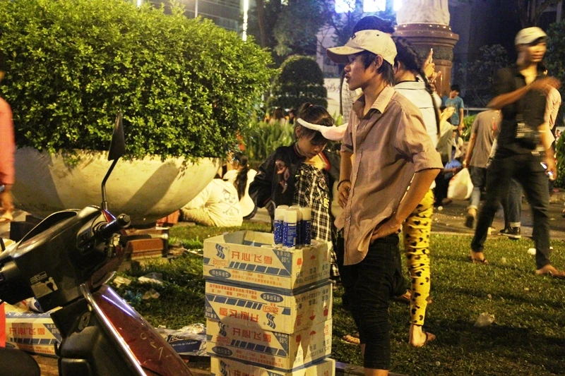 Và gần đó, cách tượng đức mẹ Maria chừng 5 m là vị trí mà hai anh em trong một gia đình làm chỗ bán hàng. Cả hai anh em vẫn chưa trở về nhà khi những bình tạo bọt tuyết vẫn đang còn khá nhiều, dù đã khuya.