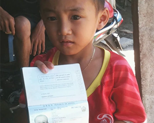 Bé Hong Dae Jun với cuốn hộ chiếu Hàn Quốc -Ảnh: V.Sự