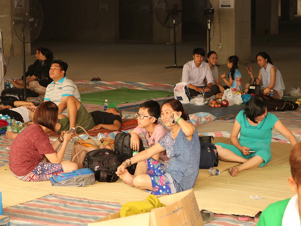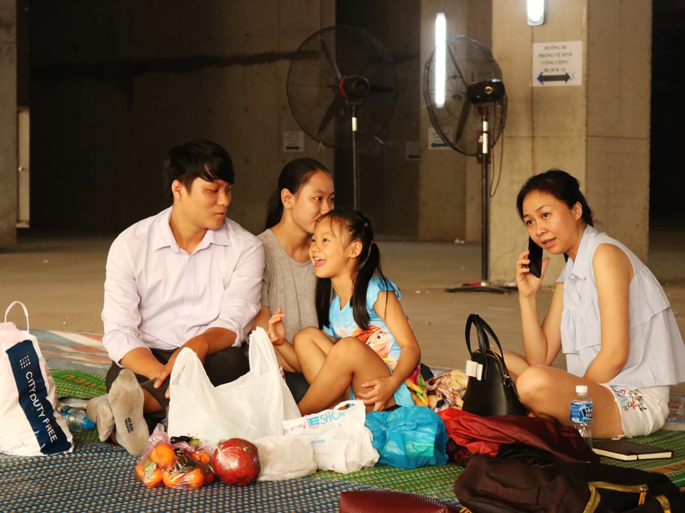 Gia đình chị Lữ Thị Cúc (quê Đồng Tháp) - một nạn nhân trong vụ cháy cho biết mình ở tầng trệt của Block C. "Tôi thuê lại căn này để kinh doanh. Sáng cùng ngày, nghe cháy tất cả hú hét con cái chạy ra ngoài. Đồ đạc không cần biết tới. Giờ tôi sợ lắm rồi, tối nay sẽ bắt xe về thẳng quê. Chưa thể nghĩ đến việc kinh doanh hay buôn bán lại" - chị Cúc nói. Ảnh Nguyễn Tân.