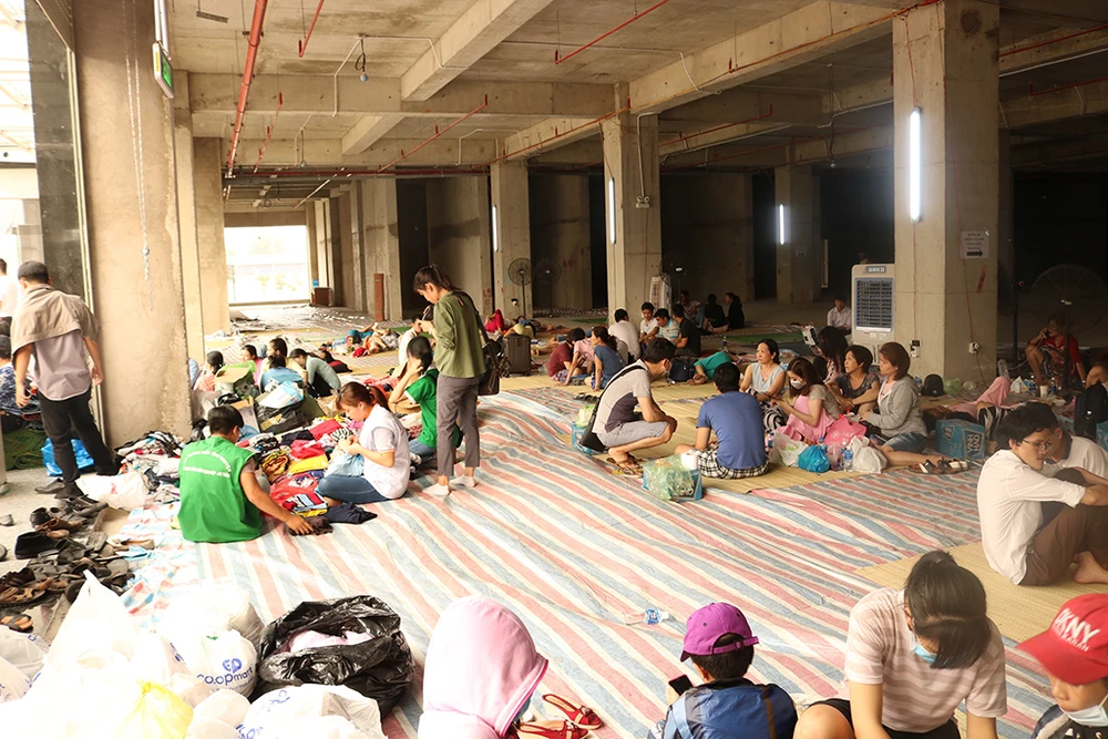 Một tình nguyện viên thuộc Trung tâm Công tác xã Hội thuộc Thành Đoàn TP.HCM cho biết sau khi nhận được thông tin đã tới hiện trường để hỗ trợ người dân. Theo thông tin ban đầu, sảnh chung cư City Gate Tower bên cạnh Carina Plaza là nơi sinh hoạt tạm thời cho khoảng 300 người dân; số khác vào khoảng hơn 100 người được những cư dân tại chung cư này cho ở nhờ. Ảnh Nguyễn Tân.