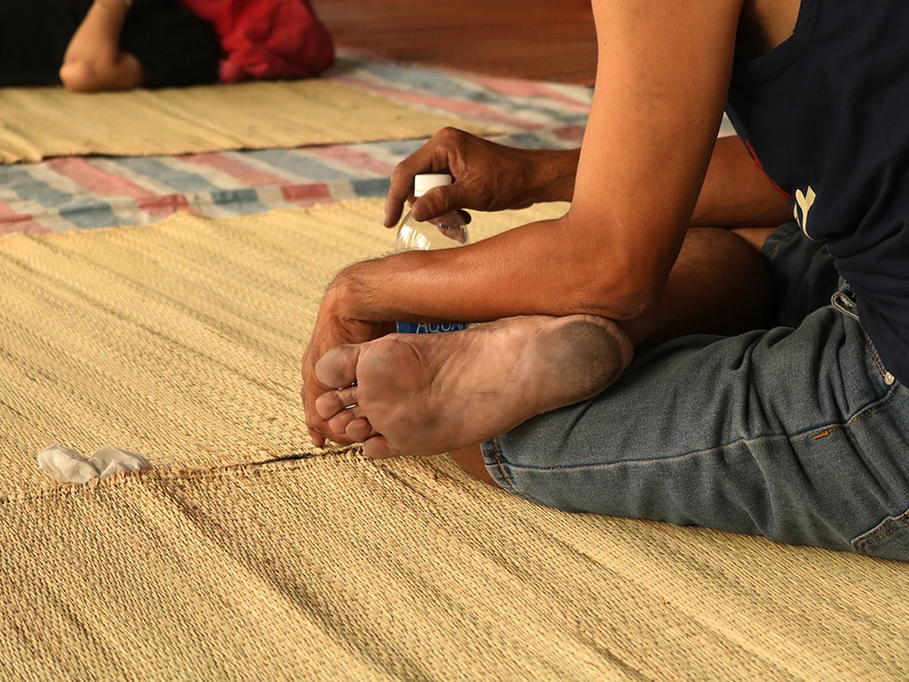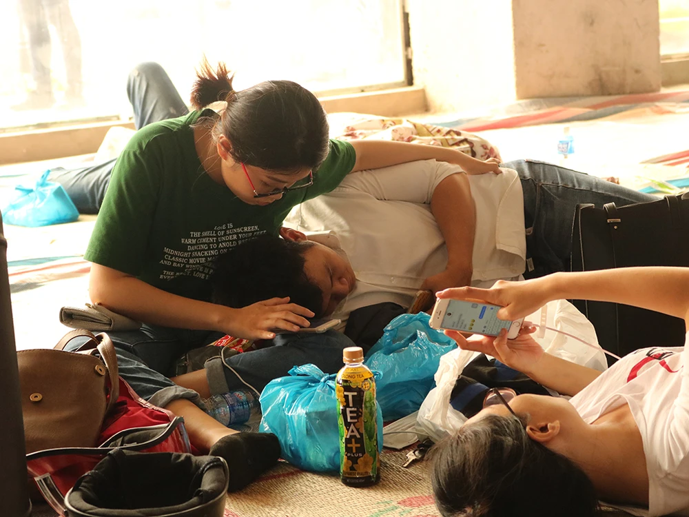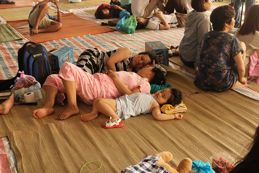 Cả một thời gian dài mệt mỏi, nhiều người khi được nằm xuống đã ngủ mê mệt mặc dù xung quanh khá ồn. Ảnh Nguyễn Tân.