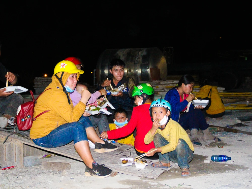 Ngày 29-7, tại điểm trung chuyển qua hầm Hải Vân (địa phận TP Đà Nẵng), chị Y Mái cùng 17 thành viên trong gia đình tranh thủ ăn vội bữa cơm để chờ chuyến xe trung chuyển qua hầm tiếp theo. Chị cho biết, dịch bệnh khiến chị mất việc cạo mủ cao su tại tỉnh Đắk Nông, không đủ kinh tế để sinh sống, 17 thành viên trong gia đình chị Mái chọn cách lái xe xuyên đêm để về quê nhà Nghệ An tránh dịch. Đáng chú ý, đoàn xe của chị Mái có 5 trẻ em, trong đó có trẻ từ 6 tháng đến 2 tuổi.