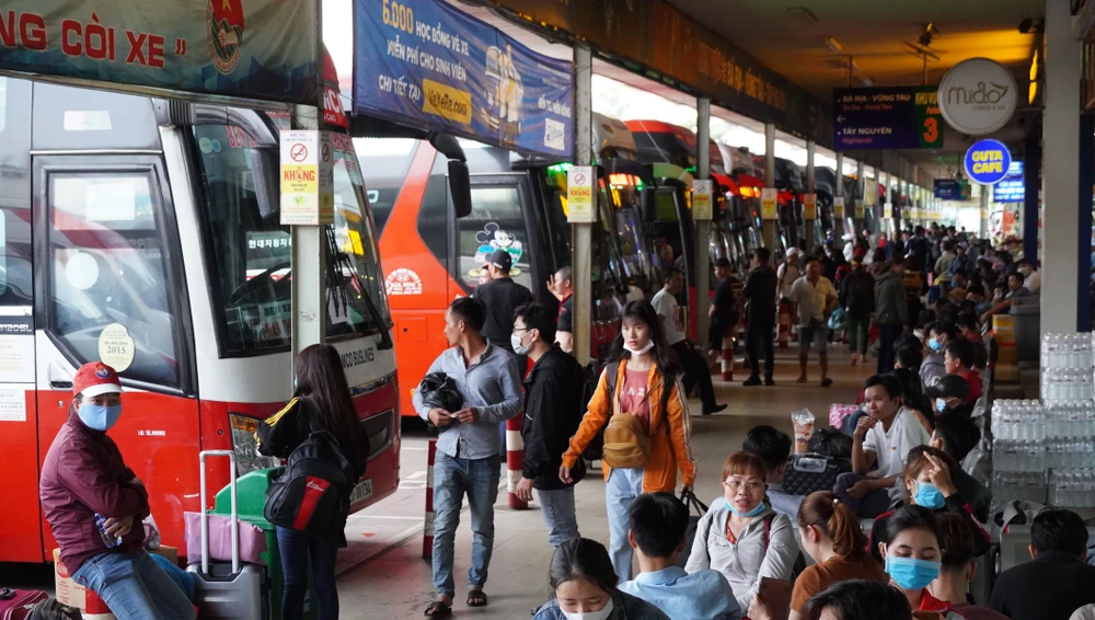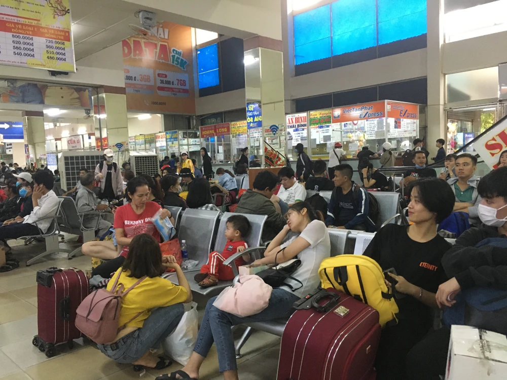 Hành khách tất bật ra nhà xe chuẩn bị về nhà. Ảnh: NGUYỄN TRÀ