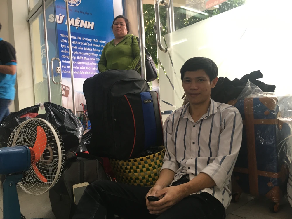 Anh làm công nhân ở Bình Dương. Anh Mạnh kể đã đặt vé ngày 29 tết rồi nhưng cuối cùng phải bỏ vé vì công ty cho nghỉ sớm. “Ở đó cũng không biết làm gì, thực ra mình đặt vé 26, 27 mà không có nên phải đặt 29. Ai dè công ty cho nghỉ sớm. Mất thêm 500.000 mua vé lại nữa. Anh đi từ 3h từ Bình Dương mà phải tầm tiếng mới lên tới Sài Gòn vì trên này kẹt dữ quá.