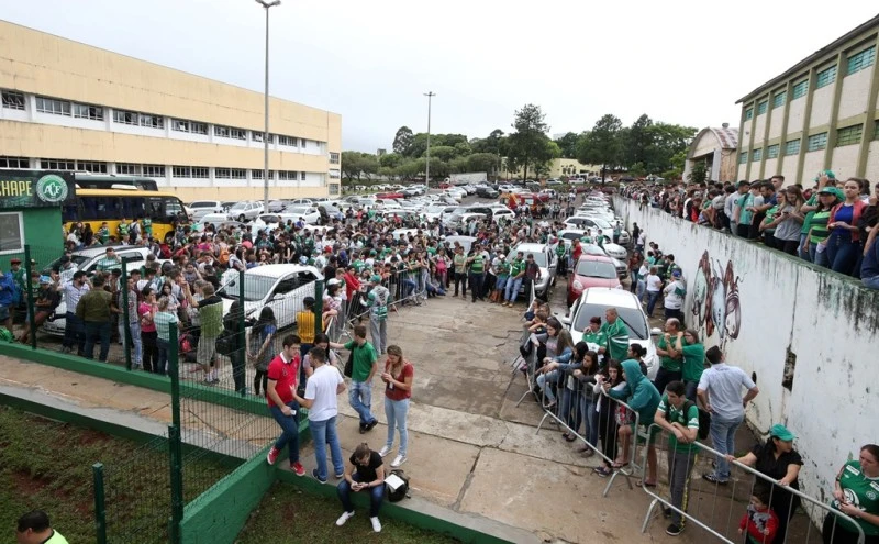 Hàng ngàn người hâm mộ đã có mặt tại sân Arena Conda để tiễn biệt và cầu nguyện cho các cầu thủ và thành viên ban huấn luyện CLB Chapecoense (Brazil) tử nạn trên chuyến bay bị rơi tại miền Trung Colombia.