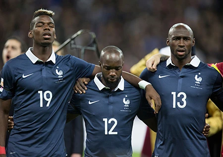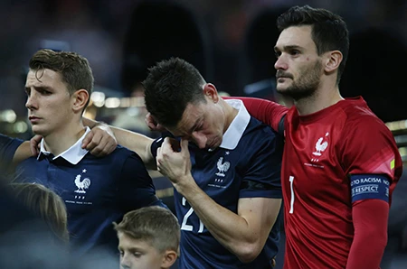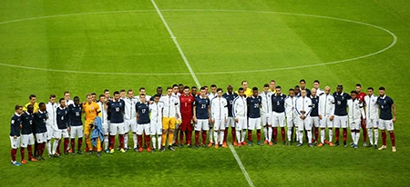 Các cầu thủ Pháp xúc động khi bài hát quốc ca Pháp vang lên.