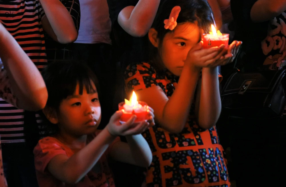 Hàng ngàn ngọn nến được thắp lên nhằm tri ân công ơn sinh thành, dưỡng dục của tổ tiên, ông bà, cha mẹ. Nhắc nhở mỗi người phải biết giữ trọn đạo hiếu. Ảnh: VÕ THƠ |