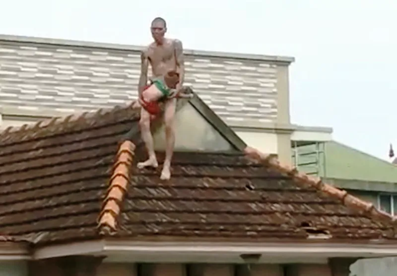 Sáng nay (21-11), người dân ở phường Vinh Tân, TP Vinh, Nghệ An hốt hoảng khi thấy một người đàn ông cởi trần, cầm dao ôm đứa con nhỏ khoảng một tuổi leo lên mái nhà ở ngõ 2, đường Nguyễn Thúc Tự.