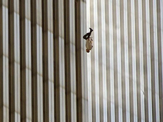 Những người bên trong tòa tháp trèo ra ngoài cửa sổ ở độ cao hơn 320 m so với mặt đất vì khói và sức nóng từ đám cháy. Rất nhiều người bị thiêu cháy và phải nhảy từ những tầng cao của Trung tâm Thương mại Thế giới. Đây là hình ảnh khiến cả thế giới không bao giờ quên về tội ác kinh hoàng mà khủng bố gây ra.