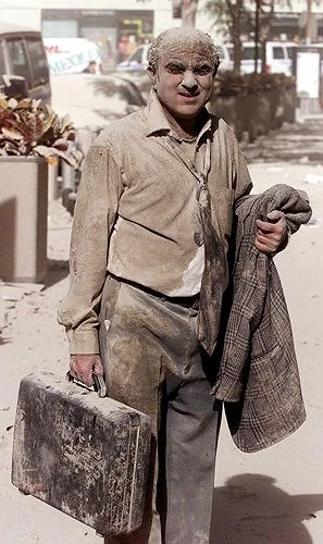Người đàn ông này đã rất may mắn sống sót. Người ông ta phủ đầy bụi trắng khi tòa nhà sụp đổ. Đối với những người may mắn này, ngày 11-9-2001 mãi mãi là ngày đen tối. Đây là dấu mốc để Mỹ thúc đẩy cuộc chiến chống khủng bố toàn cầu.