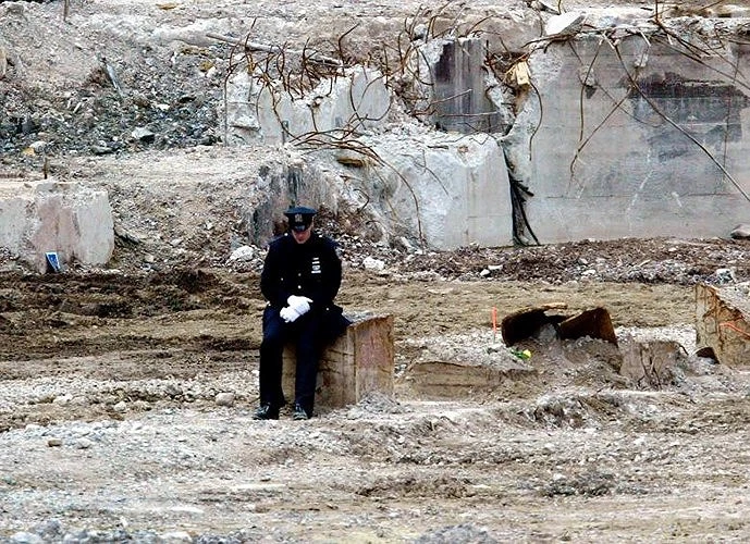 Hình ảnh một cảnh sát đơn độc tại Ground Zero - nơi từng là Trung tâm Thương mại Thế giới. Các thành viên trong gia đình anh là nạn nhân trong vụ khủng bố 11-9.