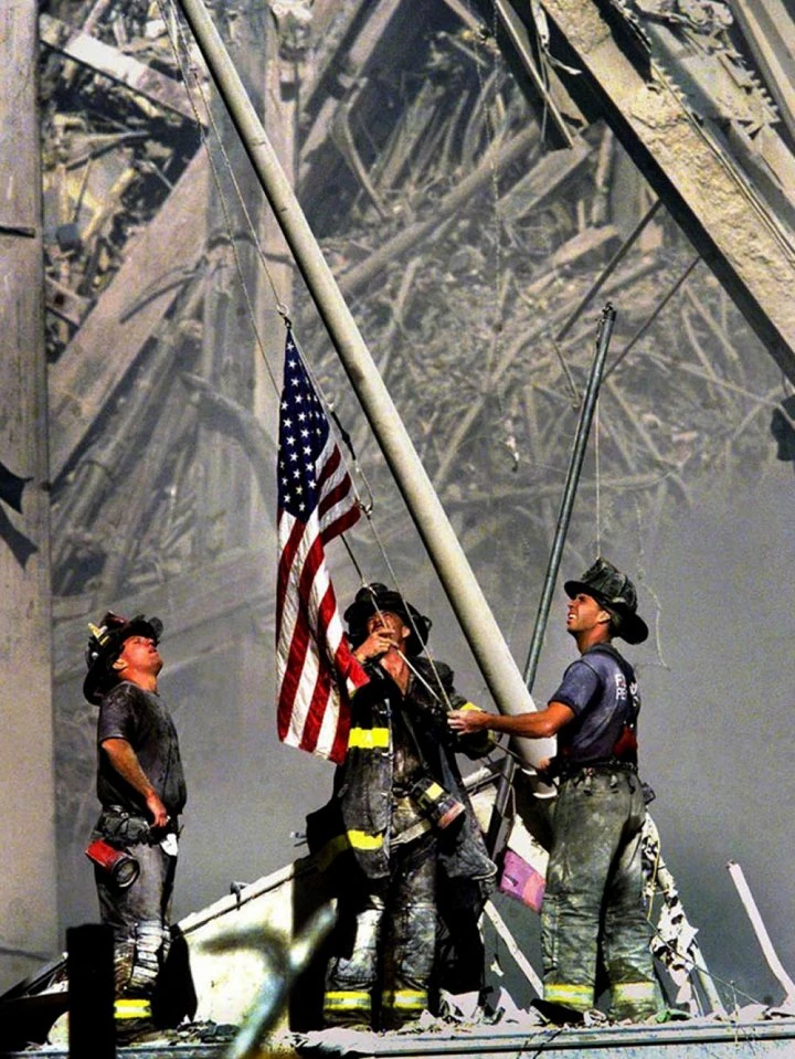 Khoảnh khắc tòa tháp đôi sụp đổ hoàn toàn, niềm kiêu hãnh nước Mỹ, gần 3.000 sinh mạng đã bị chôn vùi trong tích tắc. Khói bụi bao trùm một diện tích lớn xung quanh khu vực Trung tâm Thương mại Thế giới.