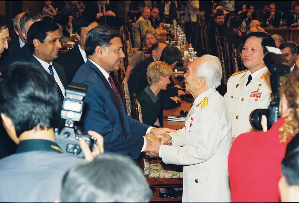 Hình ảnh Đại tướng với 150 Đoàn đại biểu Quốc tế dự hội thảo 50 năm Điện Biên Phủ tại Hà Nội vào tháng 5-2004.