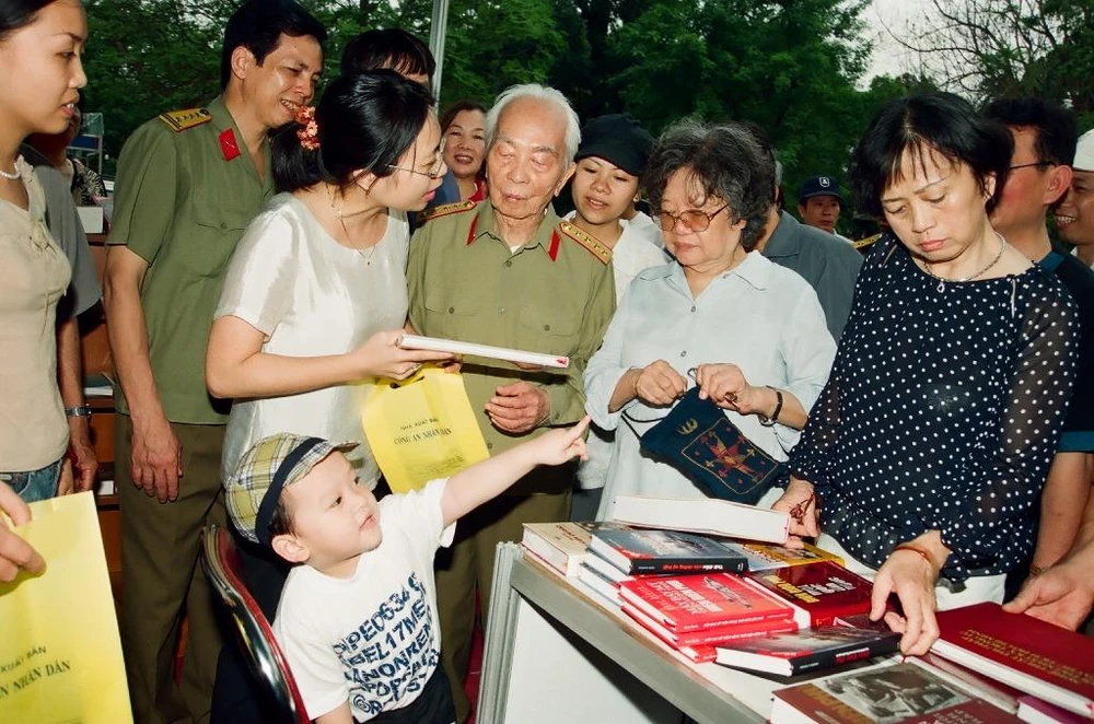 Hình ảnh cả gia đình Đại tướng đi mua sách trên đường Điện Biên Phủ - Hà Nội (năm 2007).