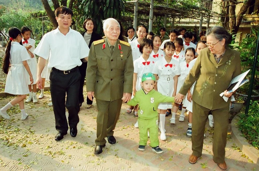 Đại tướng cùng với các cháu của trường Tình Thương tại nhà riêng (năm 2007).