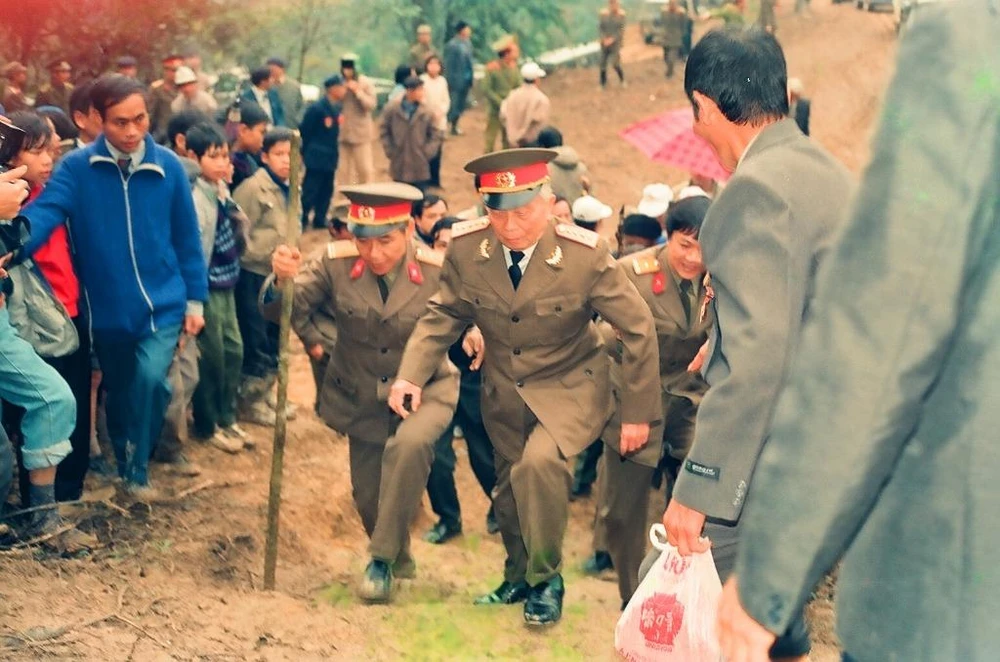 Đại tướng thăm lại khu rừng Trần Hưng Đạo (Nguyên Bình - Cao Bằng) vào 12-1994. Từ khu rừng thiêng Trần Hưng Đạo, Quân đội nhân dân Việt Nam dưới sự lãnh đạo, rèn luyện của Đảng và Chủ tịch Hồ Chí Minh, cùng với dân tộc đã làm nên những kỳ tích vĩ đại.