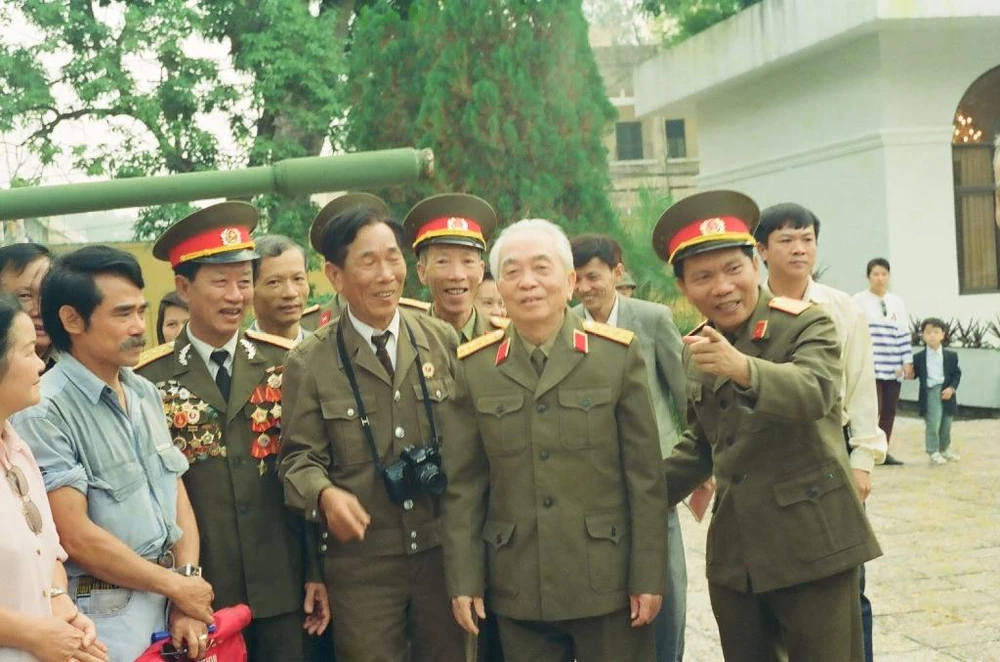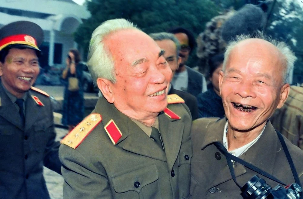 Đại tướng Võ Nguyên Giáp với phóng viên ảnh chiến trường Bùi Duy Ly