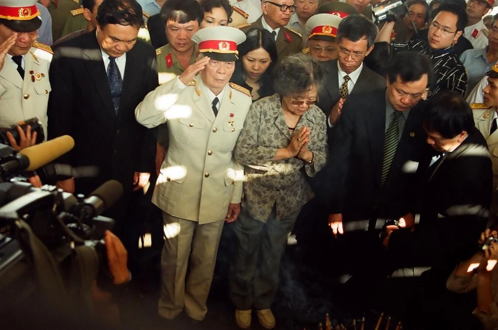 Đại tướng Võ Nguyên Giáp thắp hương ở nhà riêng tại quê nhà Quảng Bình (11-2004)